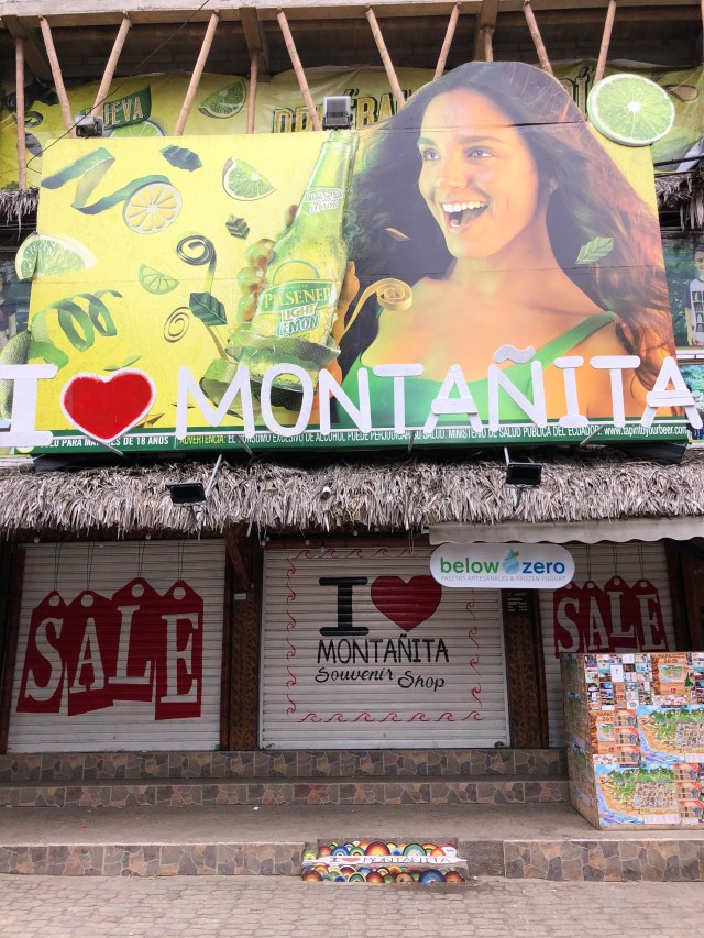 Above: Famous Montanita sign, a typical street corner, and the beach